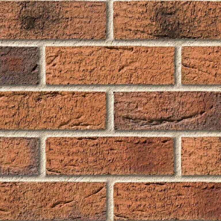 The Alexia brick, manufactured by Vandersanden, is a stock, frogged facing brick that is red / brown / multi in colour with a heavy texture.